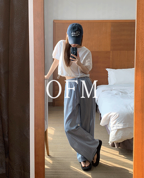 [스트라이프팬츠][휴가룩][와이드팬츠][장마룩][썸머🍉][ofm] 시어서커 스트라이프 와이드 밴딩 팬츠 (pants)