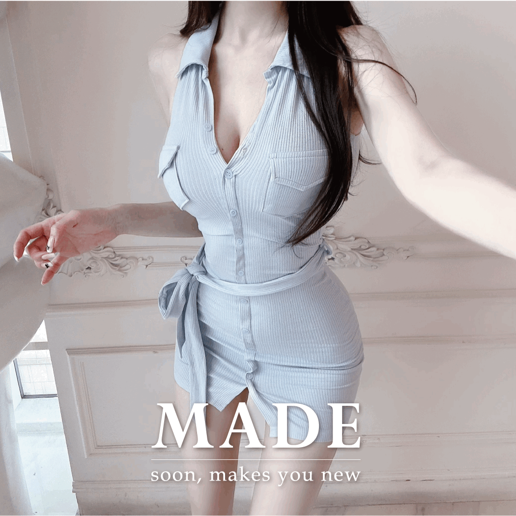 [에겐녀의🎀섹시코디,,🔥자체제작 1+1]💕홀터+타이💕=꾸꾸 데이트룩 최종결판(홀터VER.) 애니 포켓 단추 카라 홀터원피스