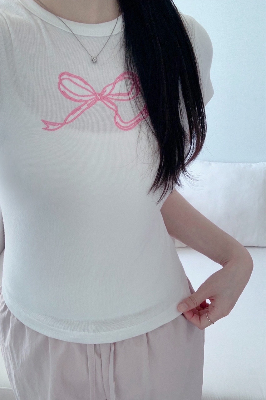 [한정수량] Shirley riboon T 수지 반팔 화이트 리본 티셔츠