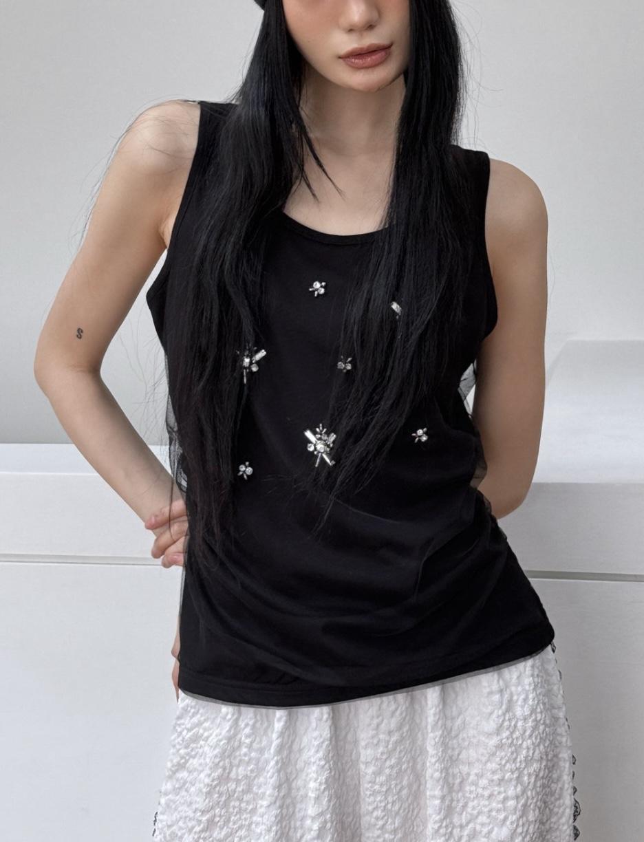 FD 비즈 망사 레이어드 나시 블라우스 3C