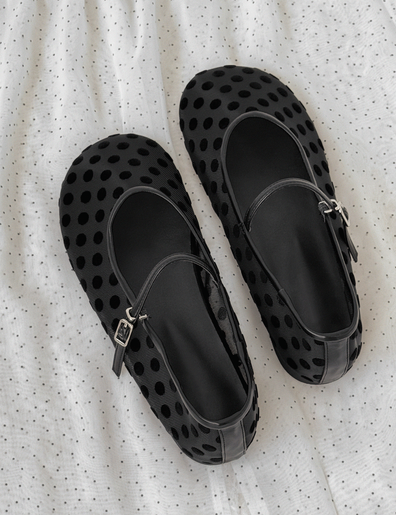 베이비 도트 메쉬 스트랩 메리제인 플랫슈즈 (1color)