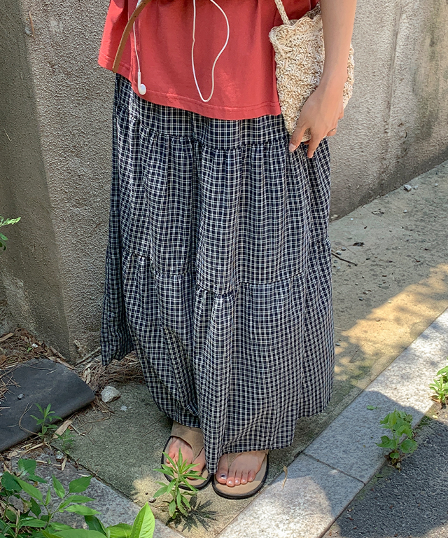 [무료배송] 세이르 체크 캉캉 밴딩 롱 스커트