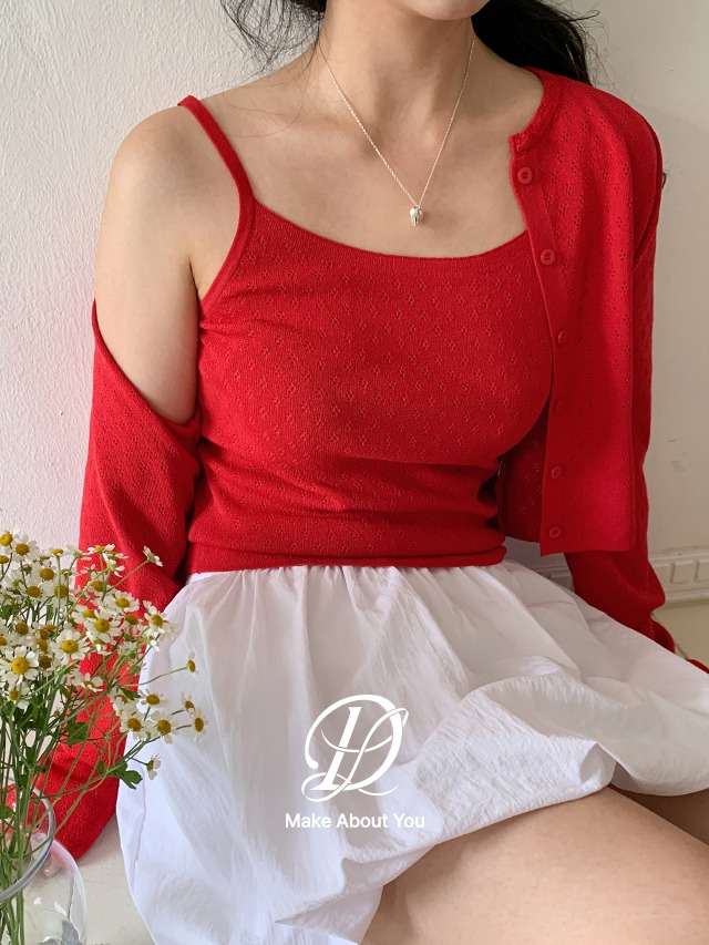 [MADE] 빅사이즈 44-110 클로버 펀칭 비스코스 끈 나시 & 레이스 가디건 투피스 여름 니트 세트 살안타템