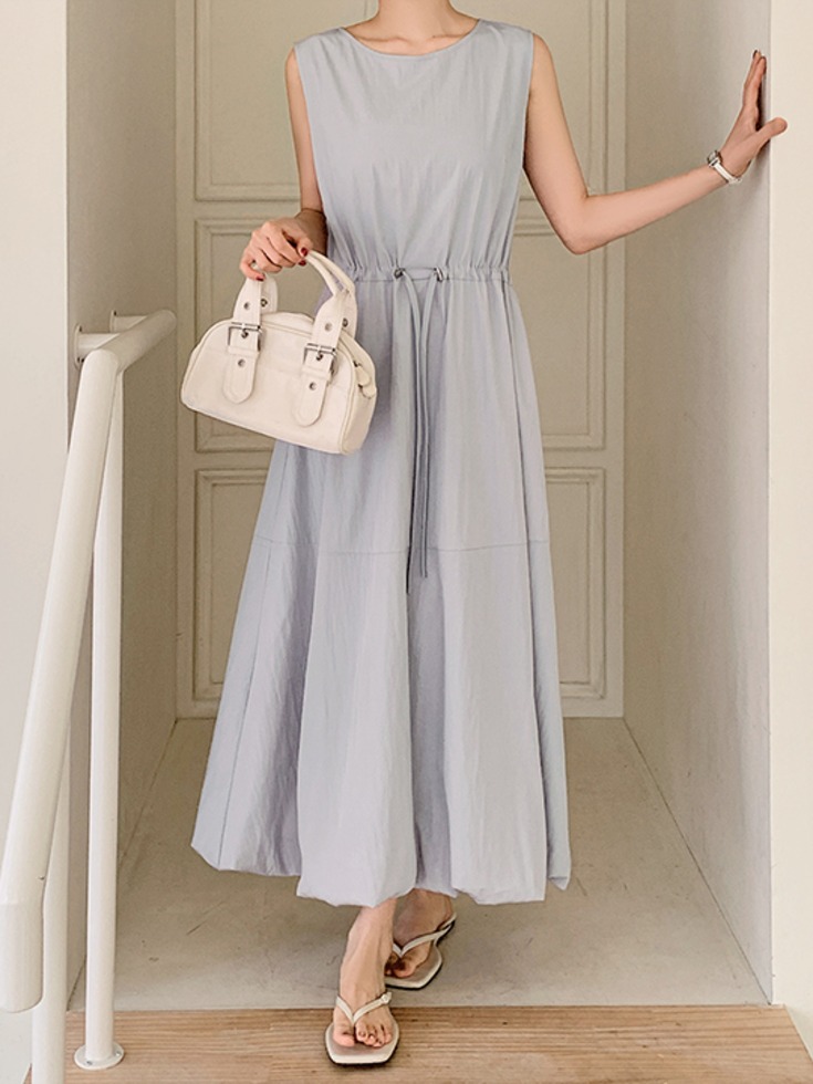 [세미벌룬핏/체형보완✔] [44-120] 루니블디 바스락 스토퍼 벌룬핏 나시 롱 원피스 (여름-신상-데일리룩-데이트룩-여행룩-휴가룩-빅사이즈-120사이즈-자체제작-스트링-벌룬스커트-바스락-뷔스티에-여름원피스)