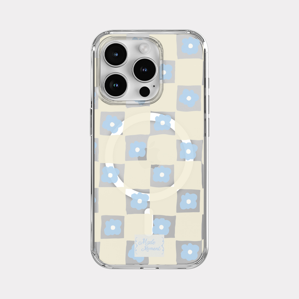 floral check 맥세이프 투명 젤리 하드 폰케이스 아이폰 16e 프로 맥스