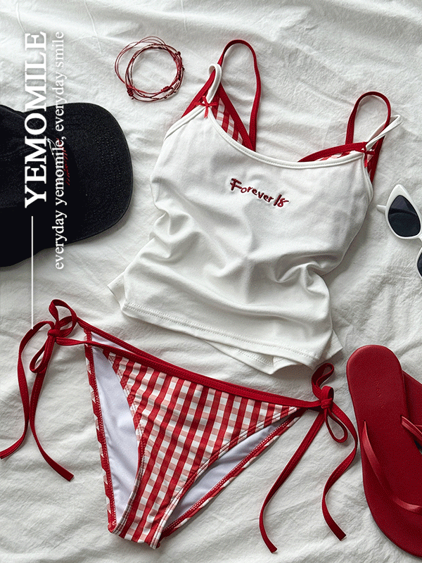 [당일출고♥] 에픽 탑 체크 비키니 수영복 (3pcs)