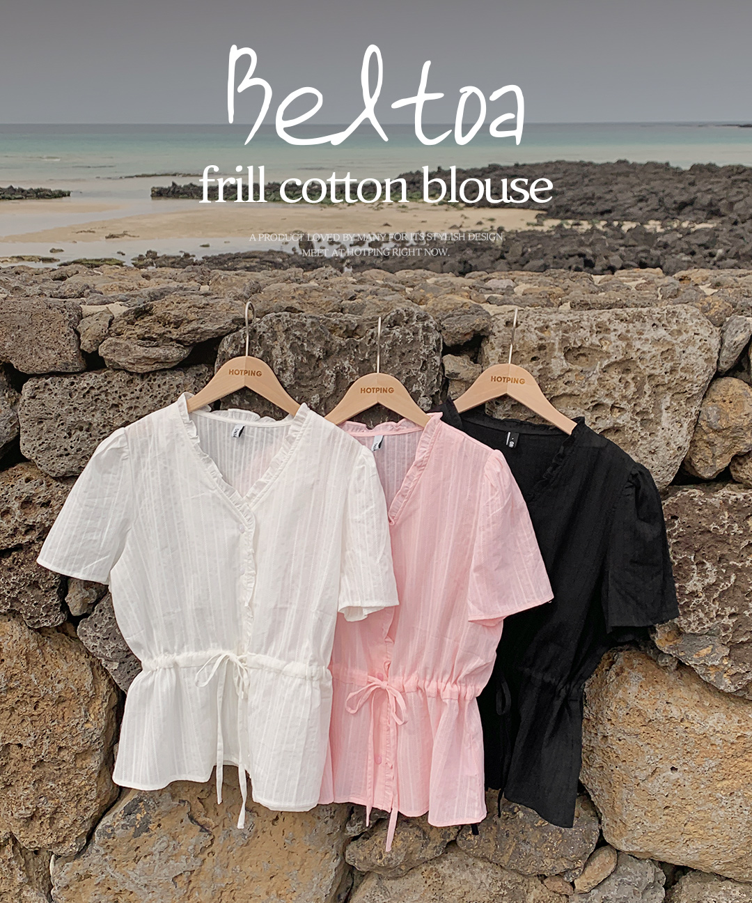 [허리잘록핏][여름🌻하객룩][팔뚝커버][MADE] 벨토아 허리스트링 프릴 코튼 반팔블라우스 (44~100) (스트링블라우스-여름블라우스-반팔블라우스-프릴블라우스-코튼블라우스)