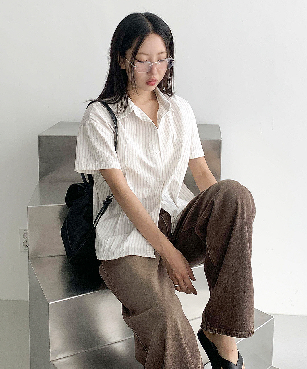 케르겔렌 썸머 루즈핏 스트라이프 반팔 남방 셔츠