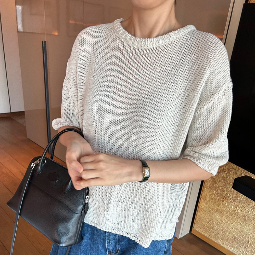 포레스트 라운드 린넨 니트 여름 메쉬 5부소매 니트티