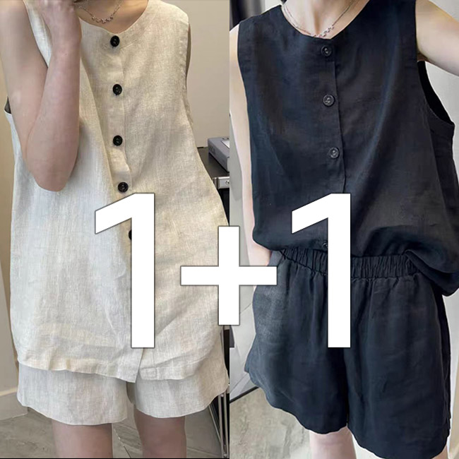 1+1 오픈세일 2셋트 반바지+나시 바캉스룩 휴가룩 밴딩반바지 달고나-상하세트