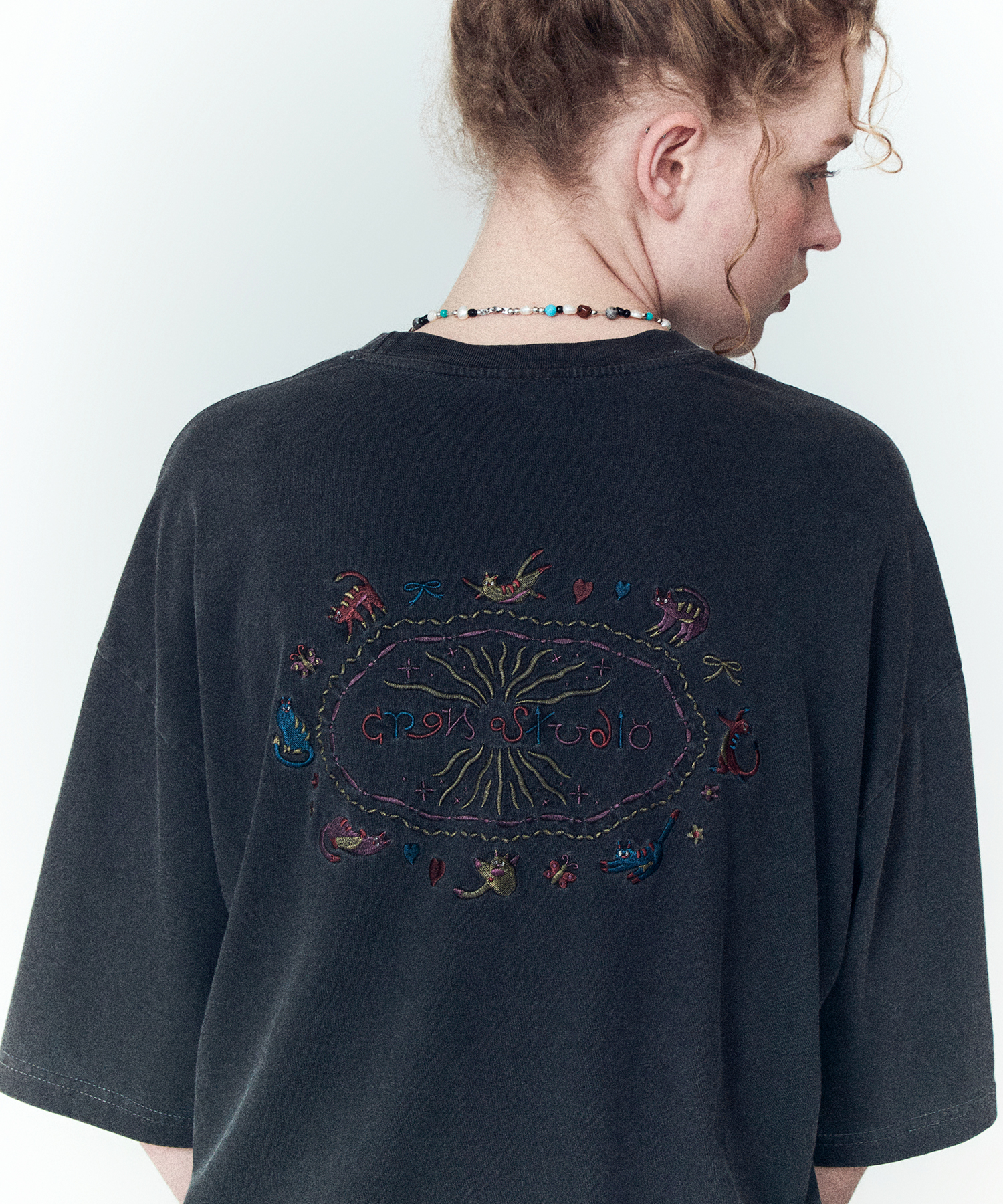 캣 스티치 피그먼트 반팔티 스모크블랙