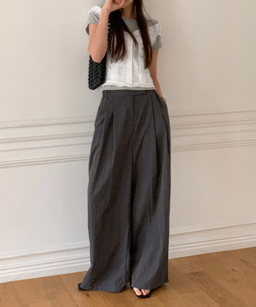 [💙여름신상 기본필수템][MADE] 사이드 뒷밴딩 투핀턱슬랙스 2color [찰랑/시원/폭염대비/밴딩팬츠/여름긴바지/와이드핏/루즈핏/베스트/데일리룩/격식룩/출근룩/하객룩