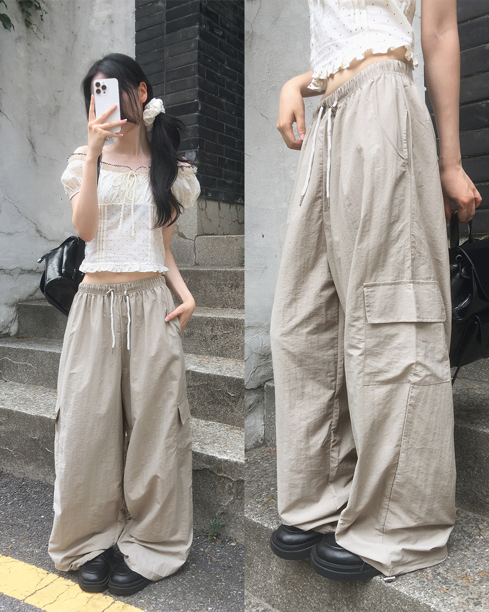 렌토 스트링 스토퍼 카고 바스락 투웨이 와이드 팬츠