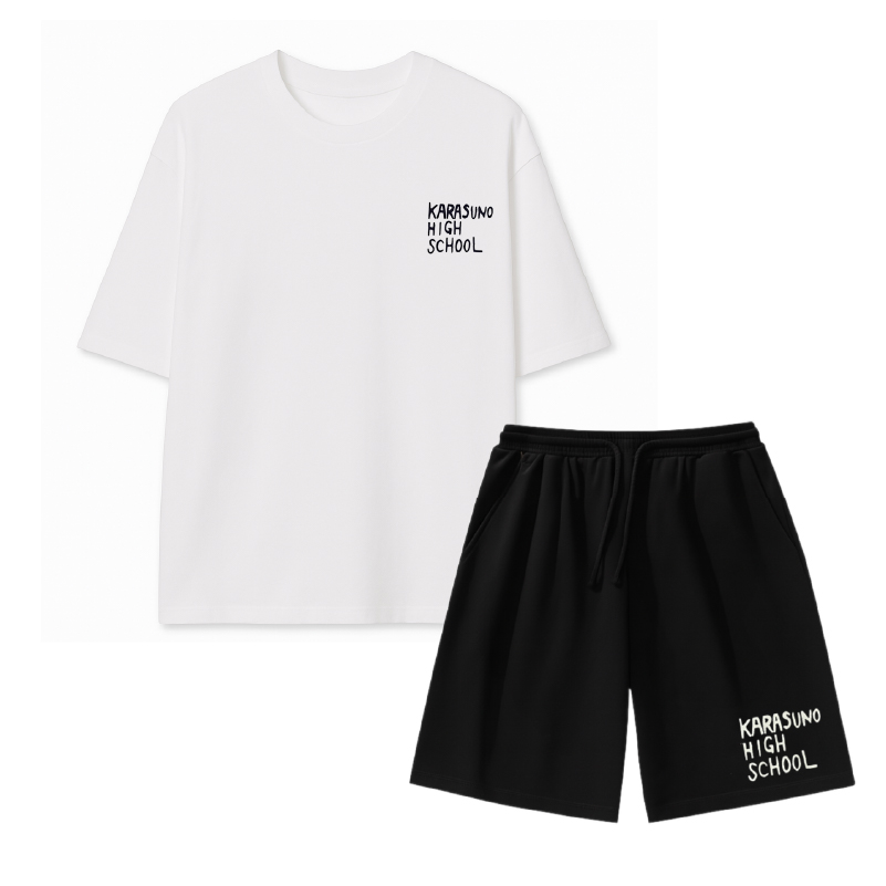 카라스노 고교 티셔츠 반팔티 오버핏 트레이닝복 반바지 하의 바지