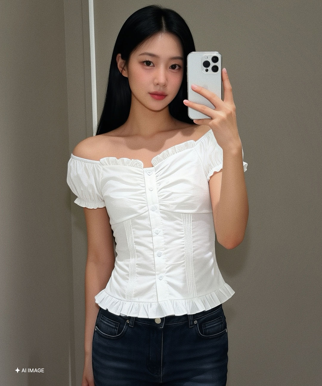 WOMAN 캡 슬리브 하트넥 셔링 블라우스 [2COL] / WBE2L03530
