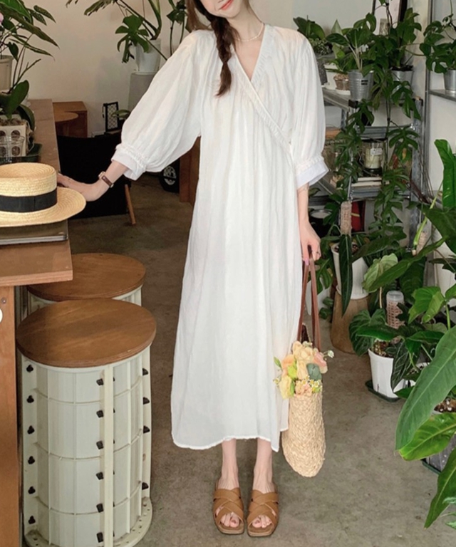 브이넥 사이드 스트랩 루즈핏 롱 원피스 롱원피스 347953