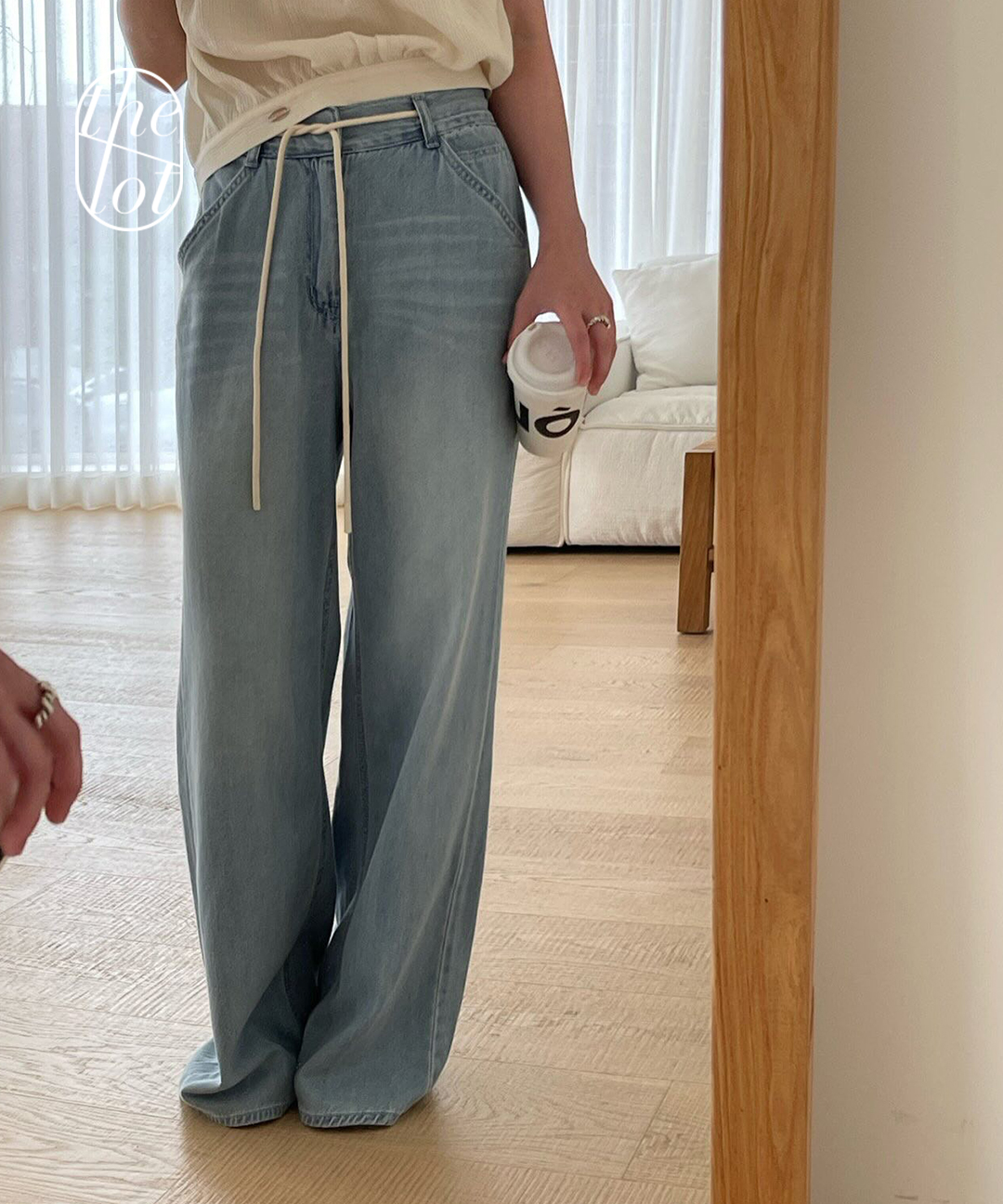 [bronze] 브론즈 스트링 와이드 데님 팬츠 (1color) 연청/워싱/루즈핏/썸머/청바지