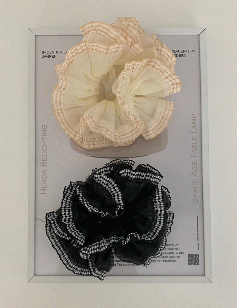 [당일] 슈슈 체크 플리츠 곱창 스크런치 머리끈 (2color)