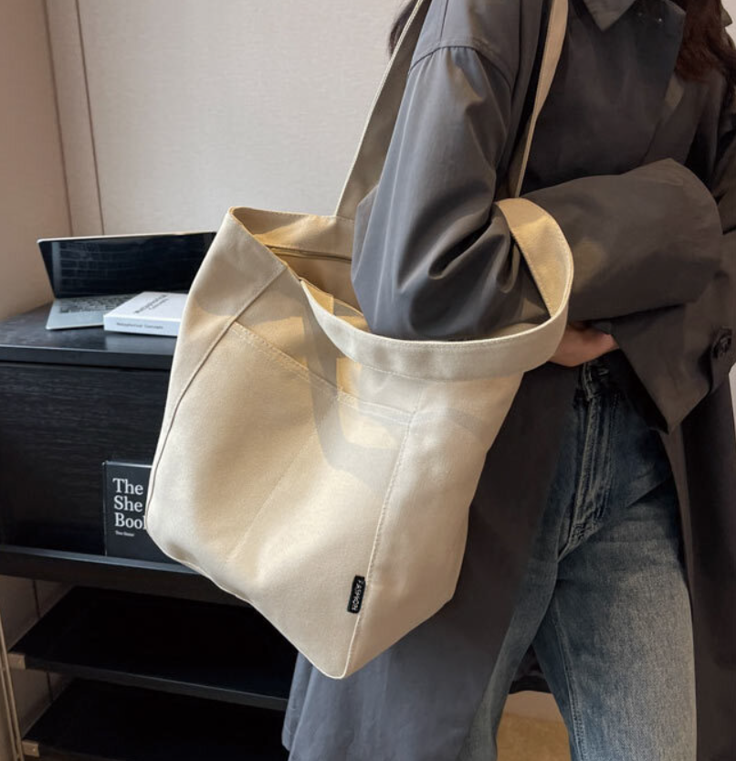 코지하루 포켓 에코백 캔버스 가방 학생 노트북 숖더백 보부상 여행 다용도