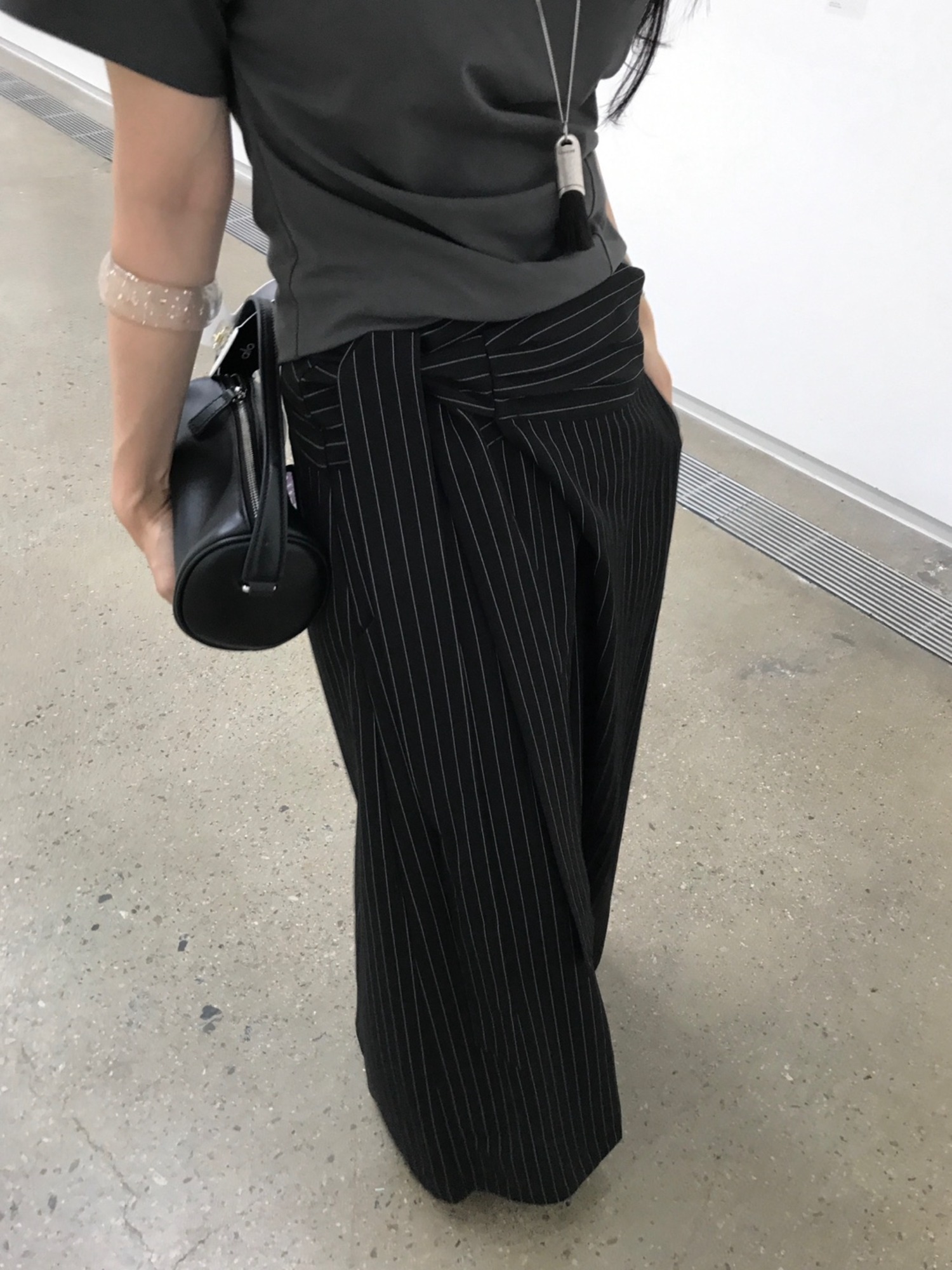 [재진행ㅣ200장 판매] 핀느 랩 맥시 스커트_2 컬러ㅣ스트라이프 크로스 랩 스트랩 허리조절 롱치마 롱스커트 얇은 가벼운 슬릿 썸머 여름 봄