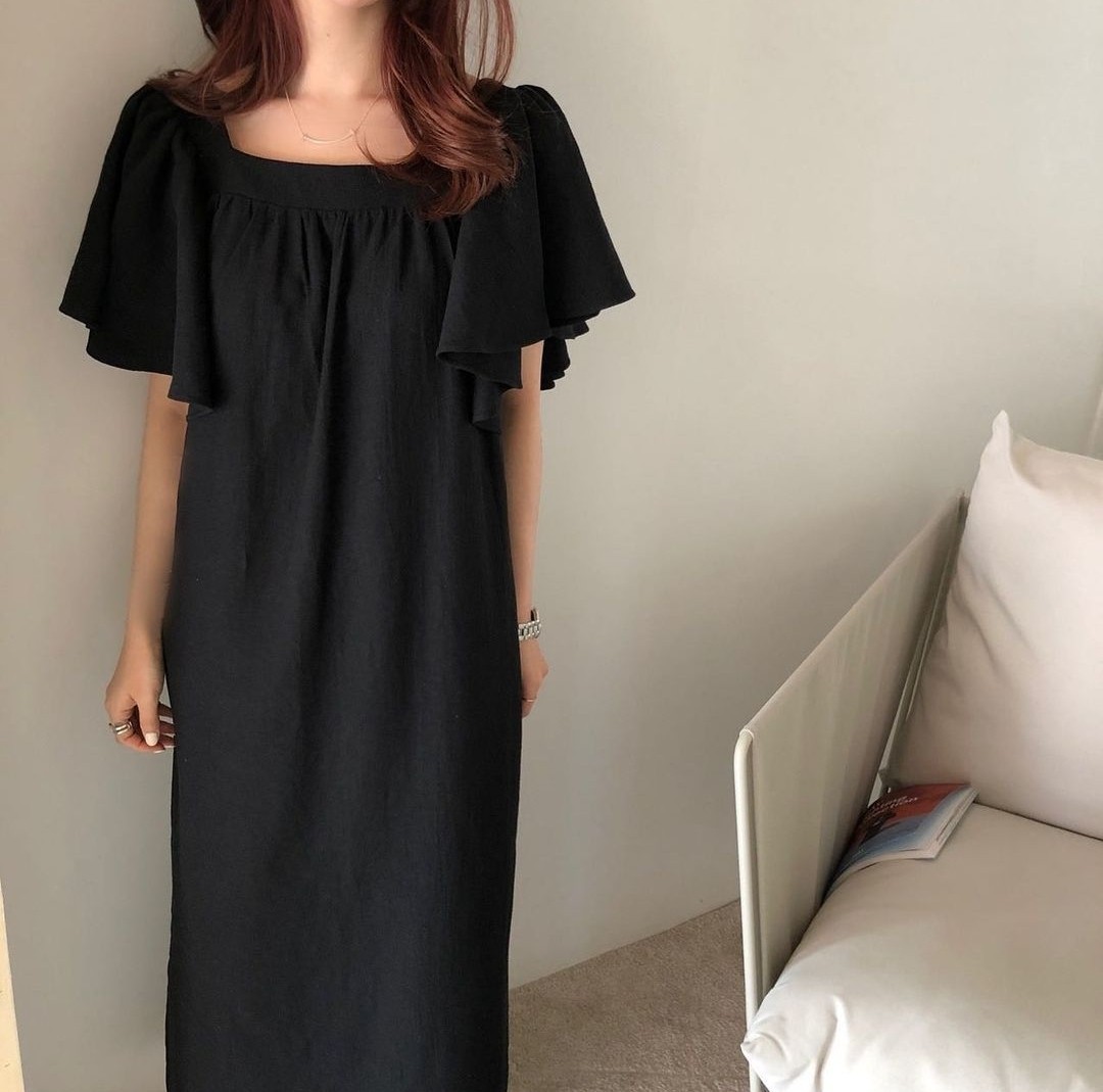 프릴 롱원피스 1+1 여름 휴가룩 바캉스룩 에이드-스퀘어넥ops
