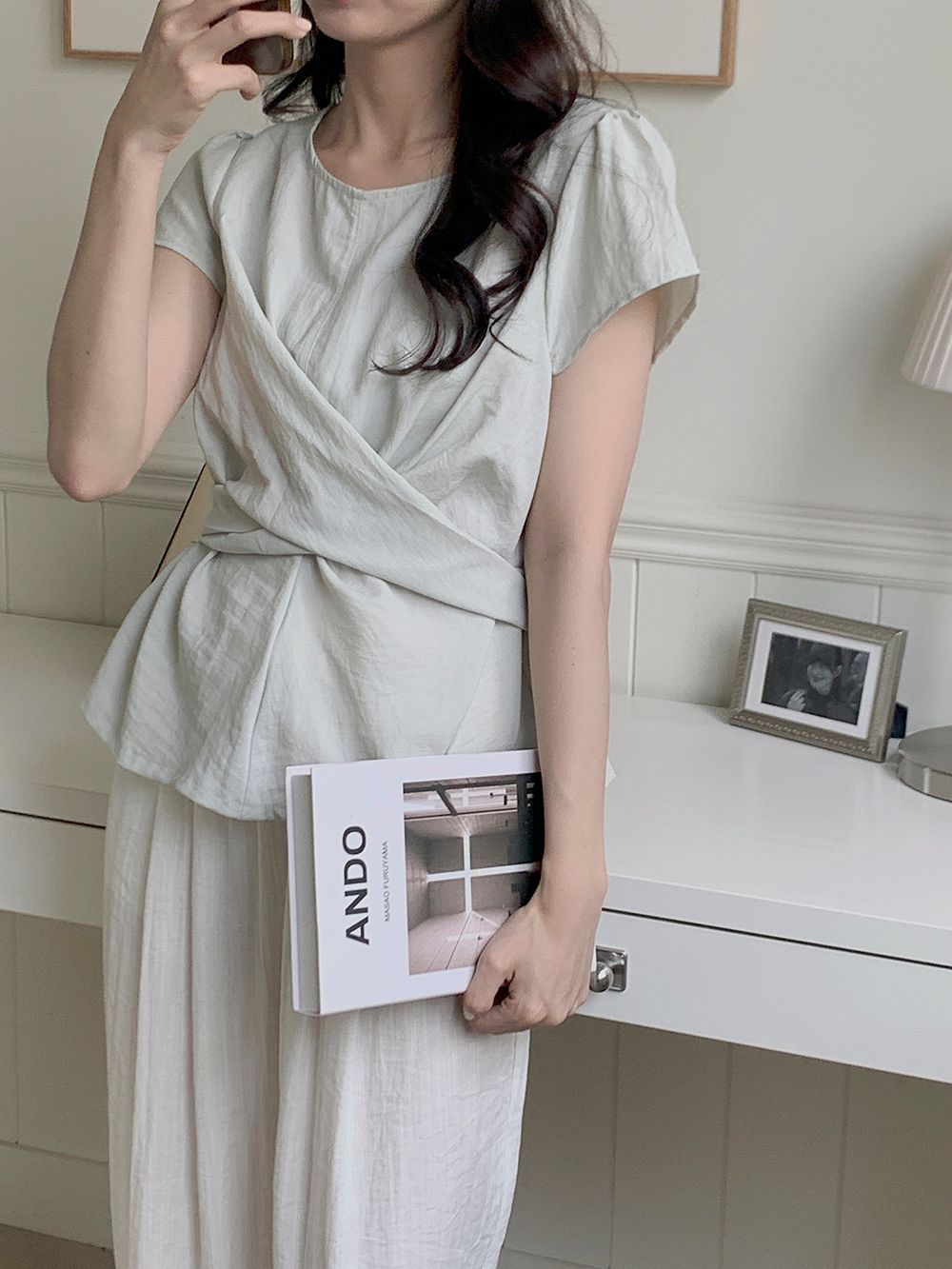[하객룩/체형커버] 리커 소프트 랩 반팔 블라우스