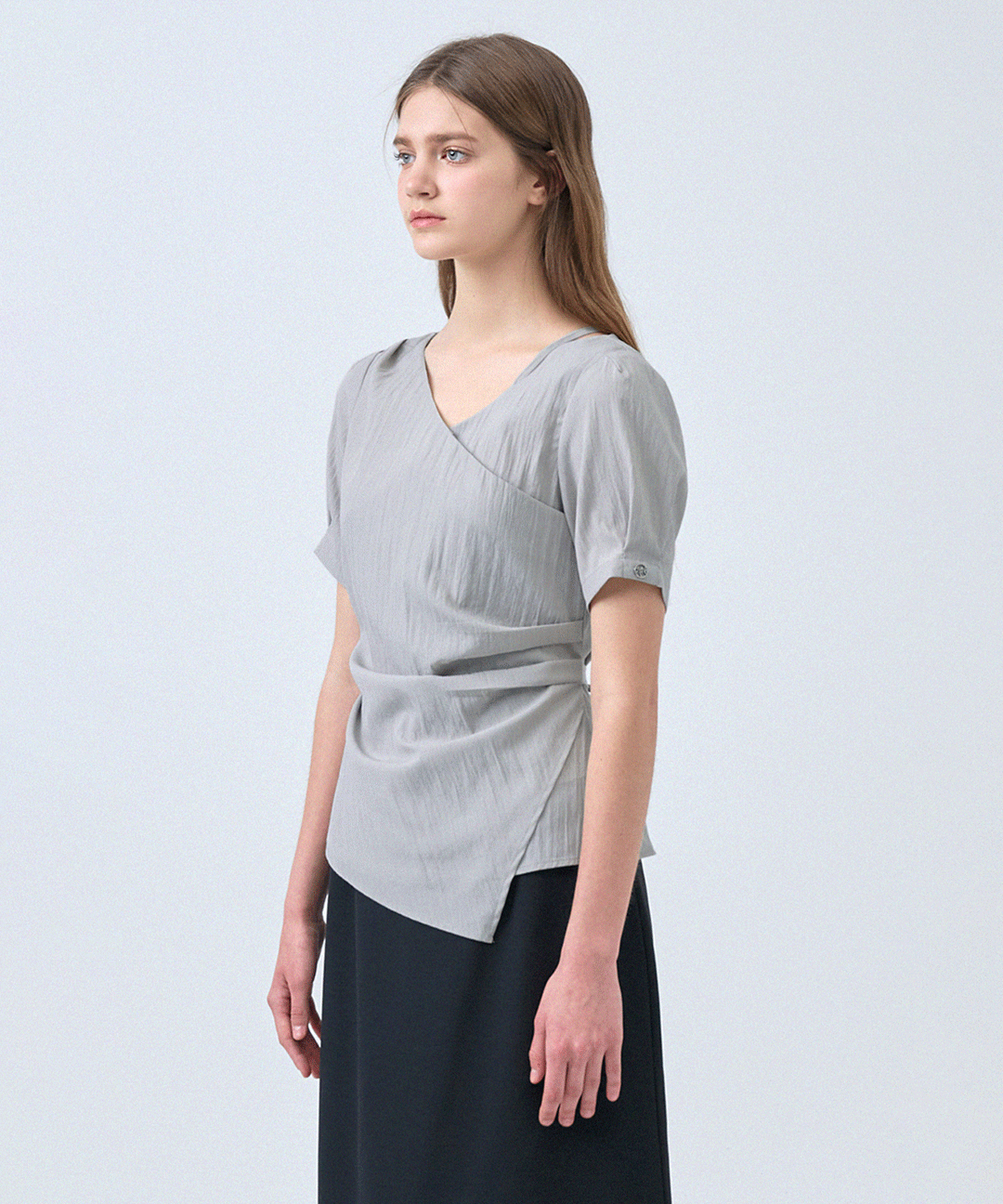 [44-120] 프레애 언발란스 스트랩 블라우스 (여름-하객룩-격식룩-데이트룩-데일리룩-오피스룩-유니크-고급-출근룩-미팅룩-언발란스-스트랩-브이넥-자체제작)