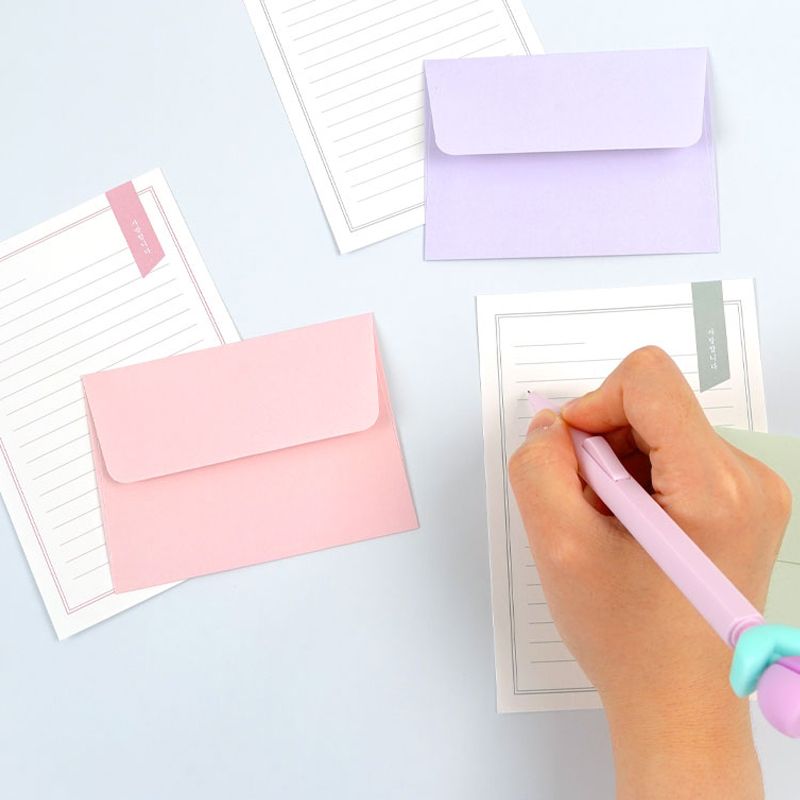 사랑합니다 미니 편선지 세트 8장 봉투 4장 1세트 파스텔 편지지 기념일 생일 감성문구