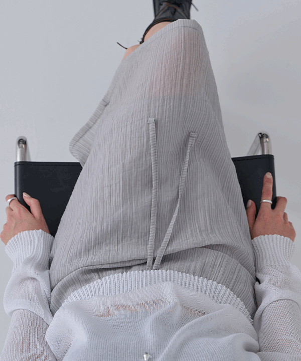페르핀 라이오셀 스트라이프 밴딩 스트링 미디 스커트 -3color