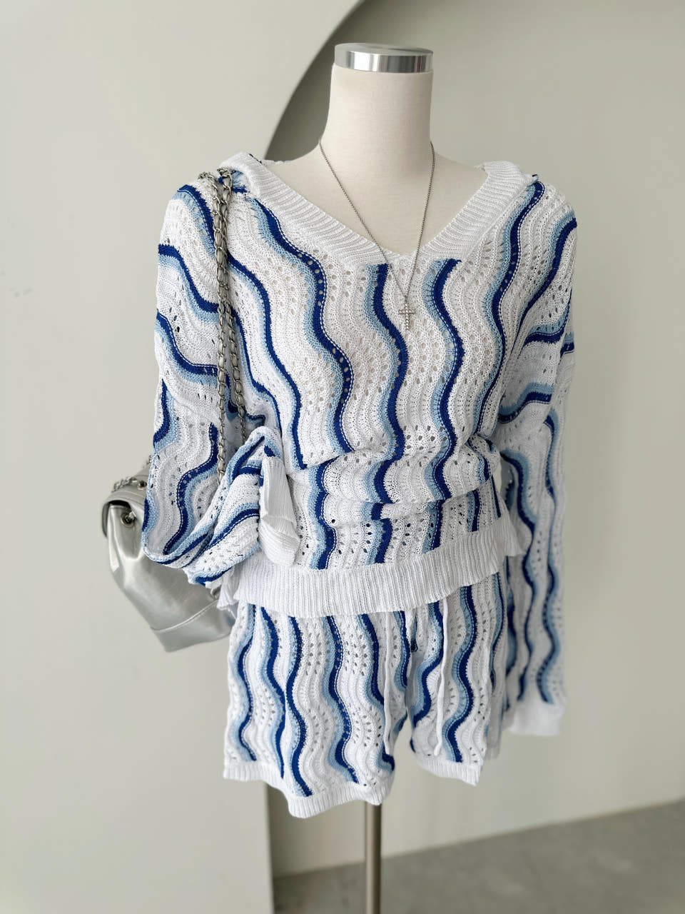 1color 블루원 니트 후드 반바지 여름 투피스 코디세트