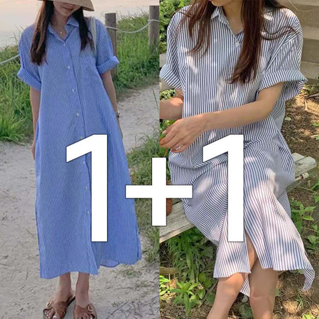 1+1 한정정리세일 박스남방 원피스 스트랑이프 바캉스룩 미켈란-줄지nb