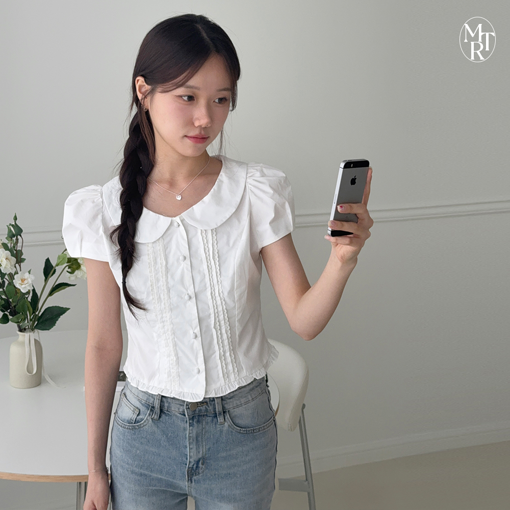 [여리핏/데이트룩💓] 유아 라운드넥카라 러블리 퍼프 블라우스 (BL8005)