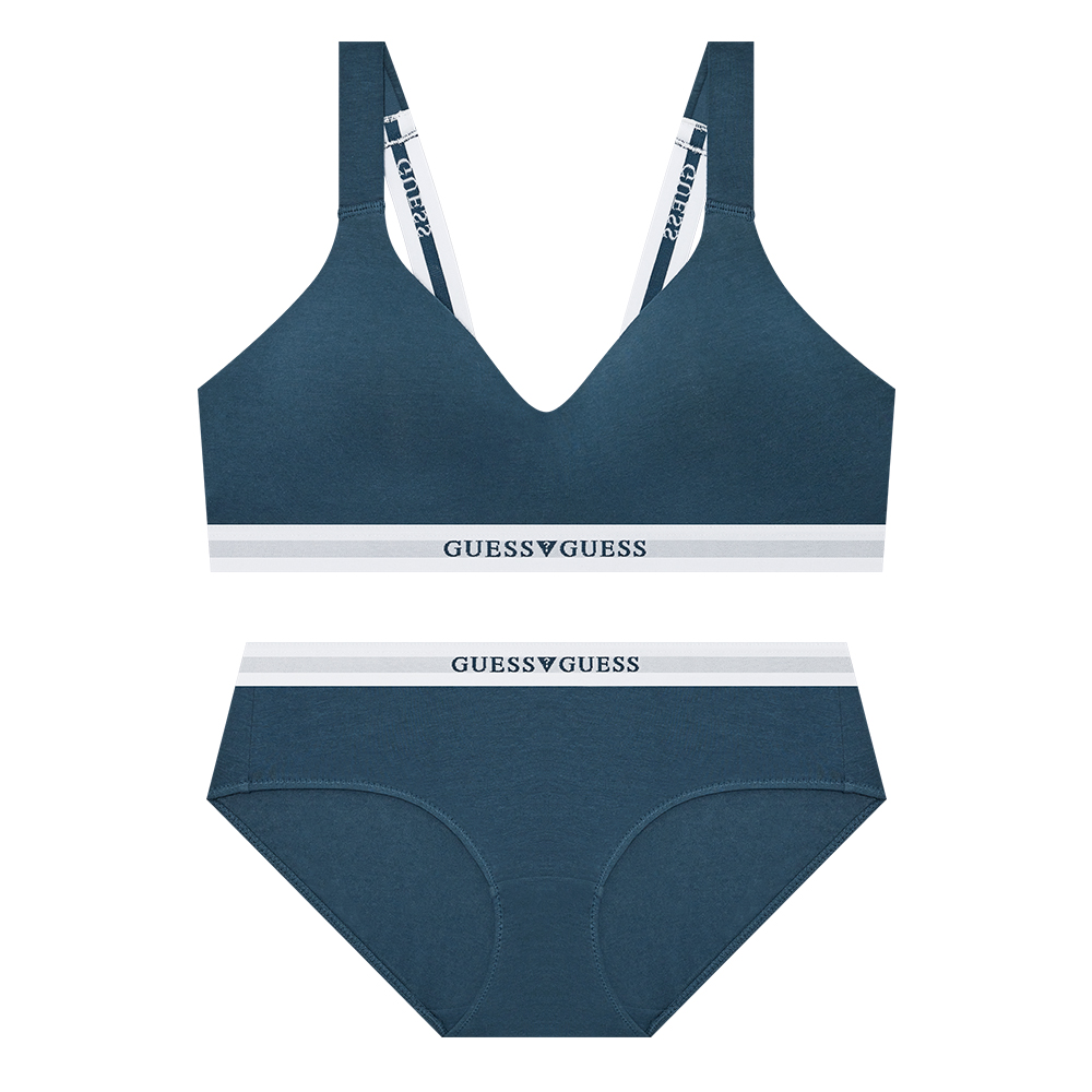 코튼 백업 노와이어 브라 팬티 세트 - 딥블루