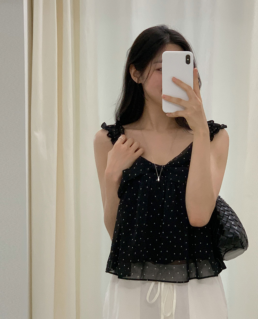 미뉴 도트 리본 블라우스