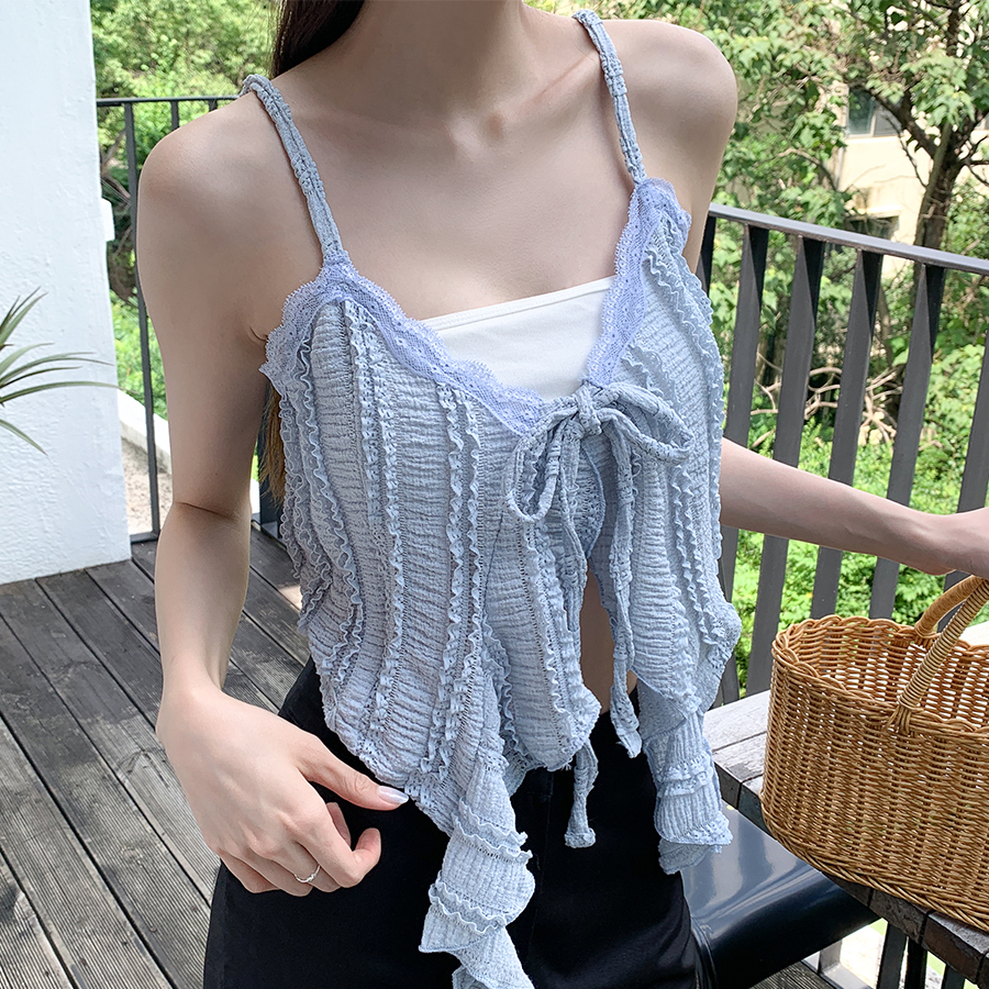 [레이어드🌊뷔스티에] 버터플라이 리본 뷔스티에 리본슬리브리스 레이어드룩 쉬폰나시 여리여리 데이트룩 여름신상
