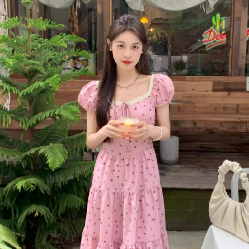 #분홍원피스 #캉캉원피스 #레드베리 #귀여운롱원피스 #반팔퍼프롱원피스 #꽃원피스