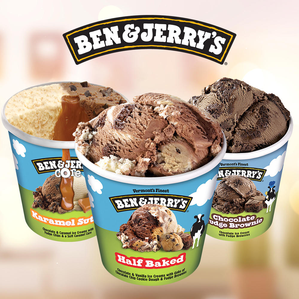 벤앤제리스 파인트 아이스크림 3종 혼합구성(하프베이크드+초코퍼지브라우니+카라멜수트라코어)