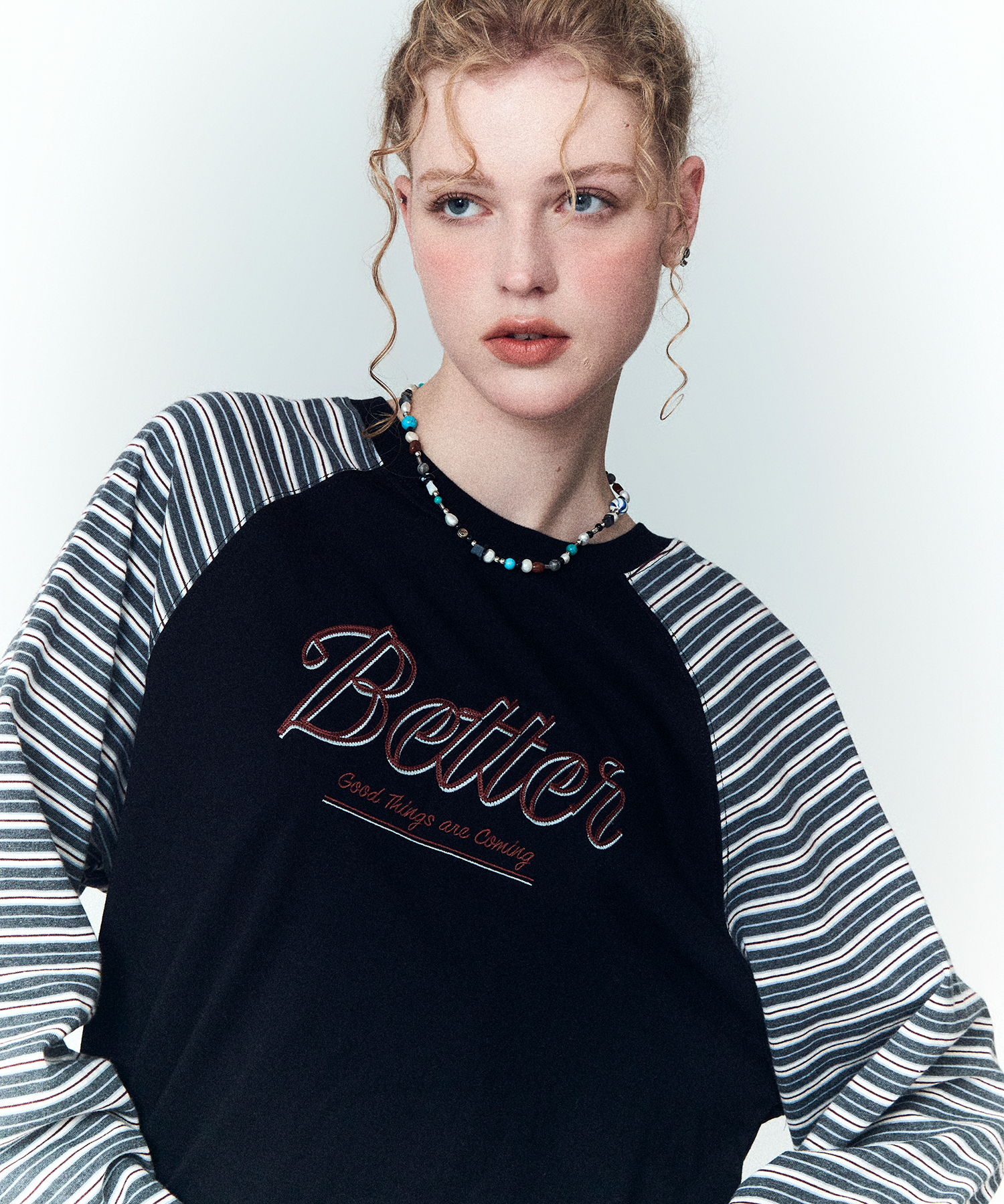 베러체인 스트라이프 레글런 롱슬리브 블랙