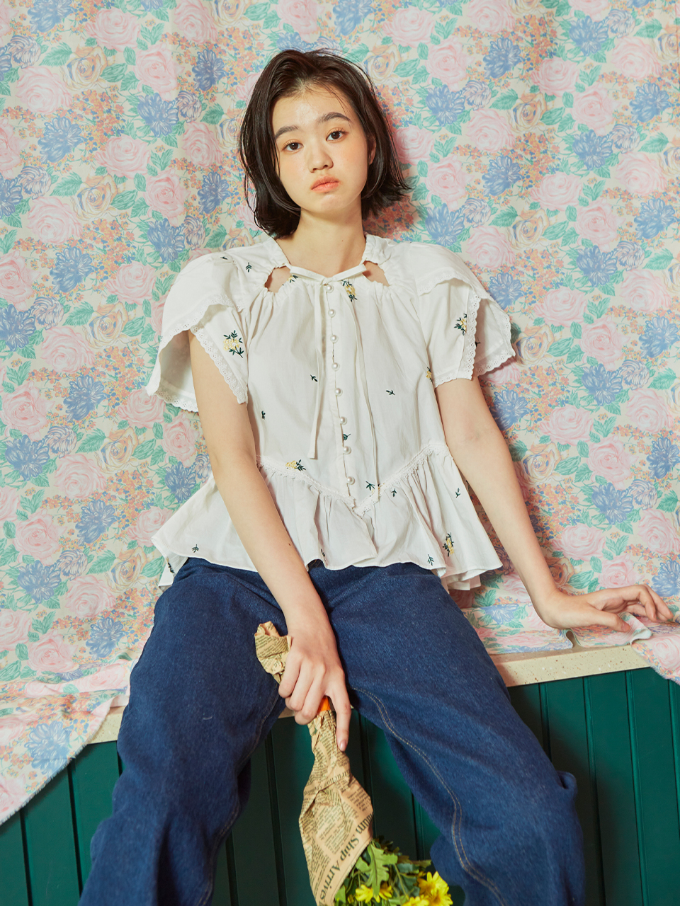 [LINE] Flower Wrap Sleeve Blouse (Ivory)