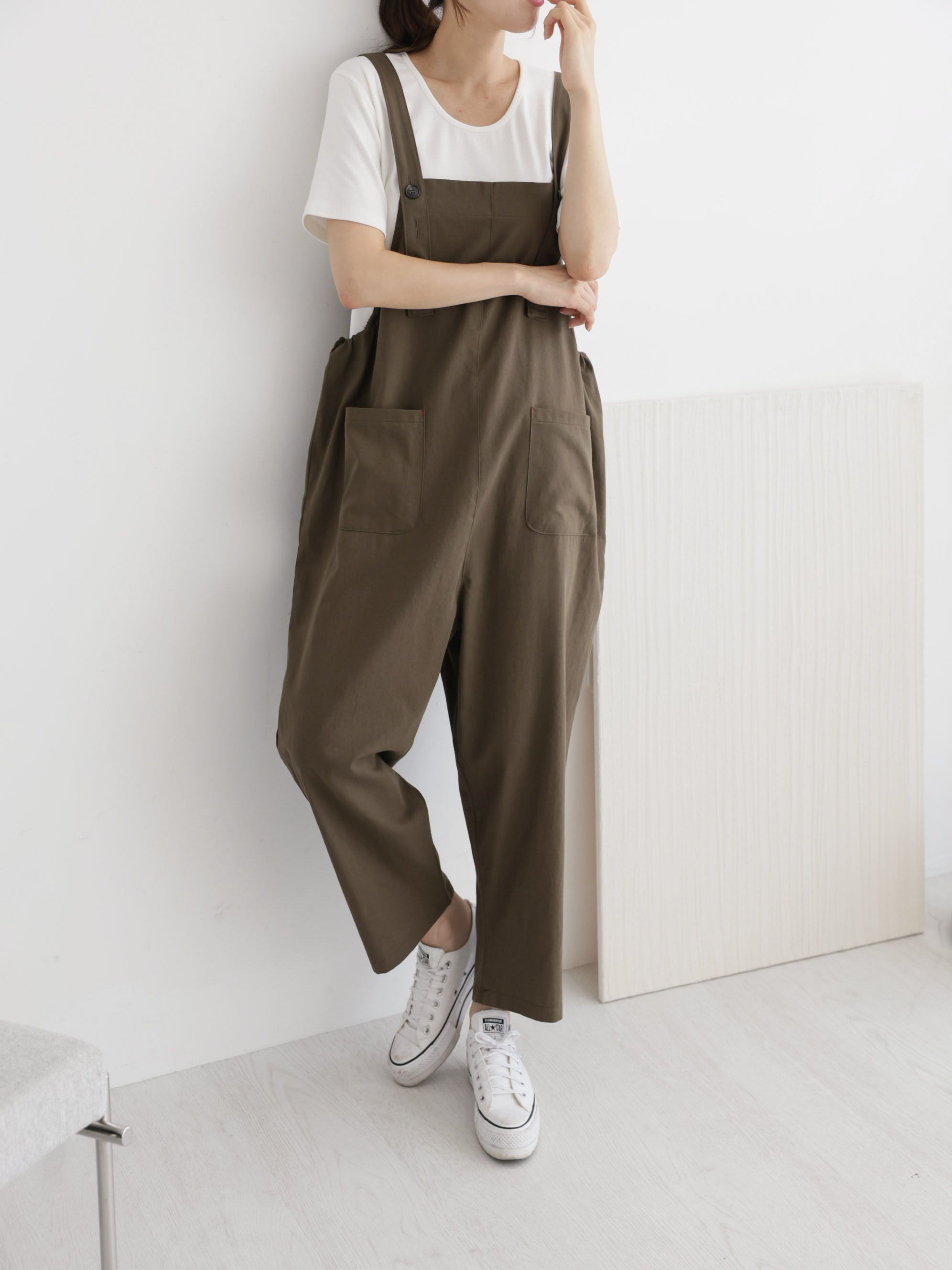 배기 멜빵바지 (점프슈트,데님,빈티지,린넨) - 카키, 블랙, 진청