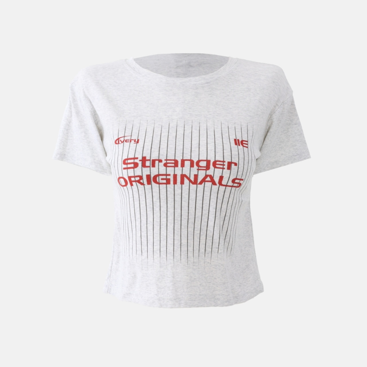 [3color]스트레인저 레터링 스트라이프 프린트 나염 반팔 티셔츠