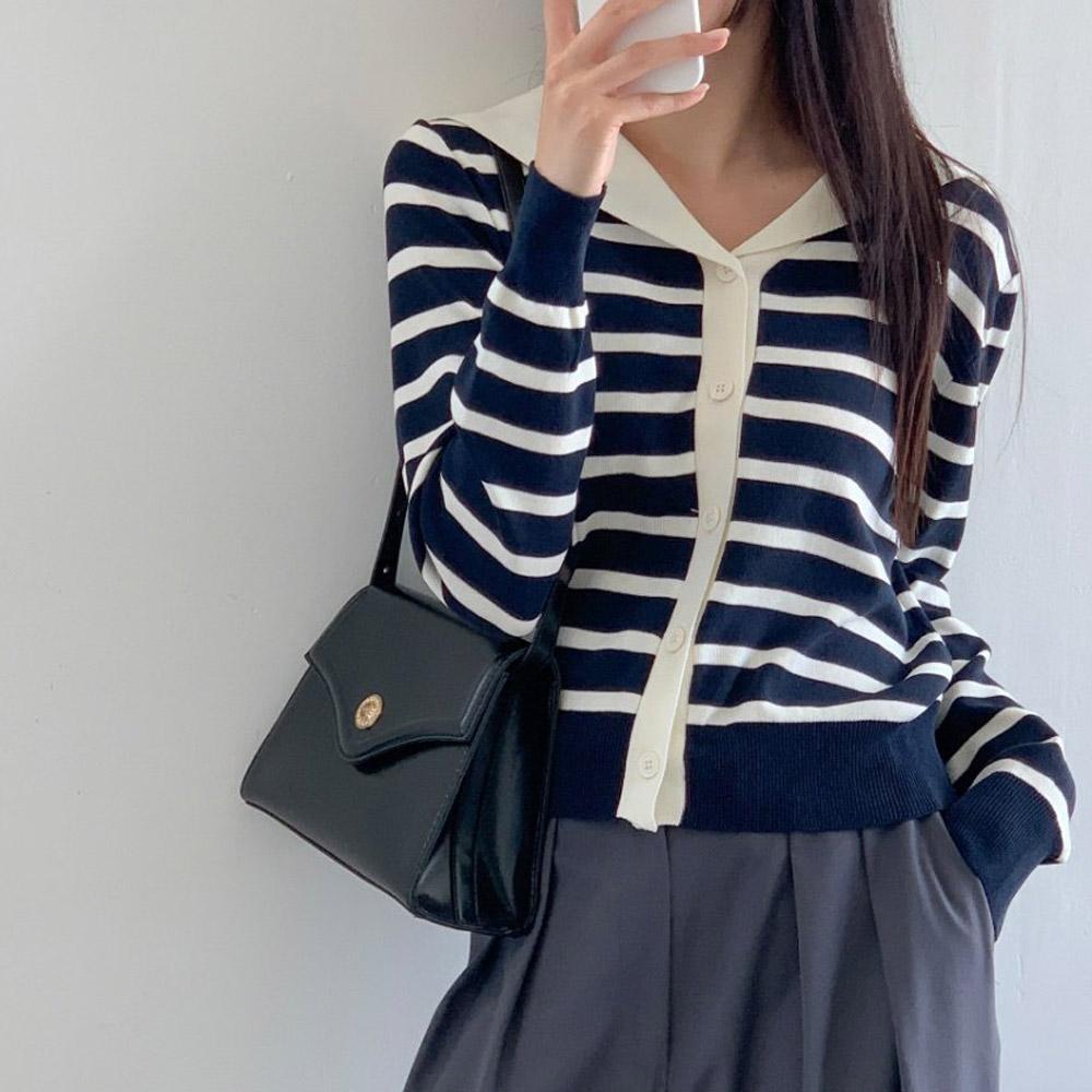 세라 카라 스트라이프니트 크롭 여성 긴팔가디건