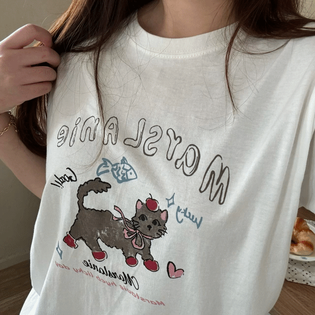 [여름 반팔/루즈핏] 여름 면 반팔티 라운드넥 프린팅