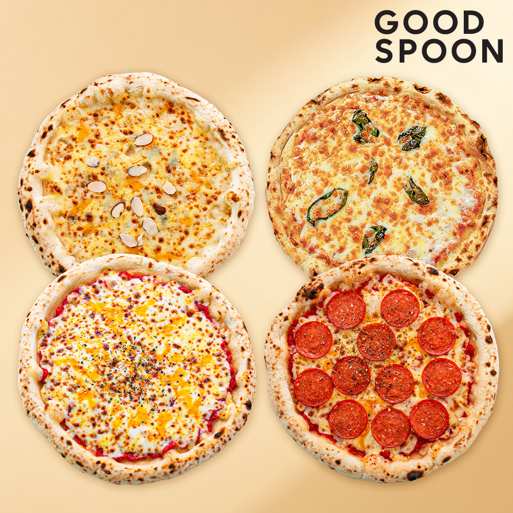 굿스푼 나폴리 화덕피자 4종 4판 고르곤졸라 마르게리따 페페로니 자연치즈 냉동 간식 배달