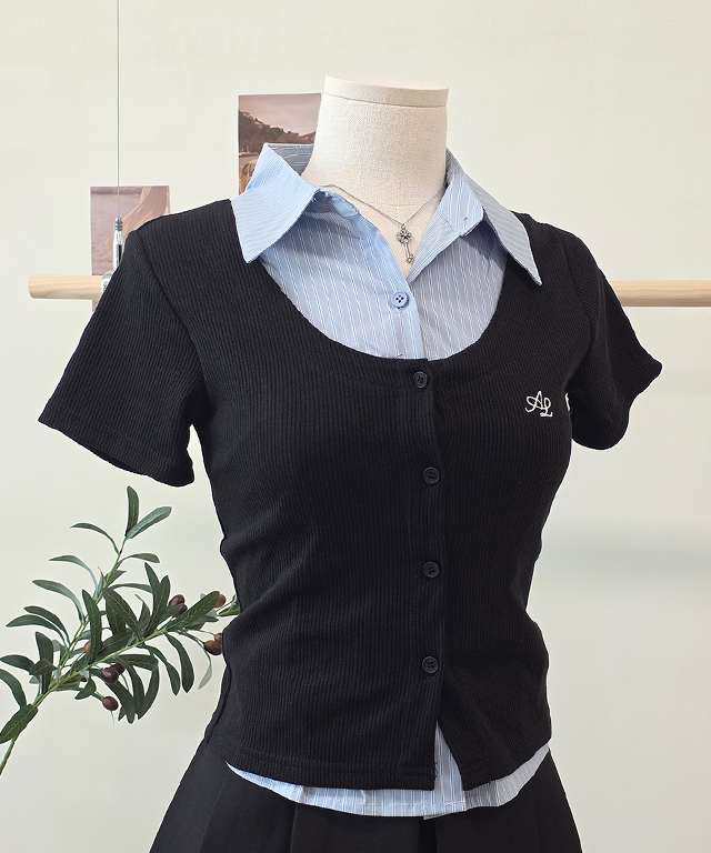 [프레피룩] 스프라이트 레이어드 셔츠 니트 반팔