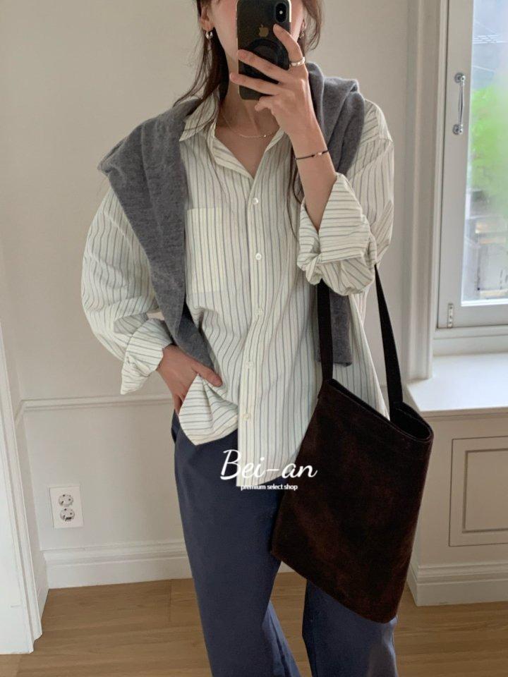 fllanel 플라넬 리드 스트라이프 셔츠 카라 긴팔 루즈핏 단가라 남방 (2 color)