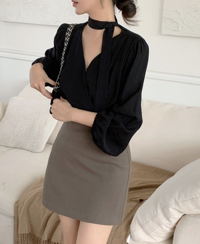 [연말룩/하객룩/출근룩] 르베니 투웨이 브이넥 타이 블라우스