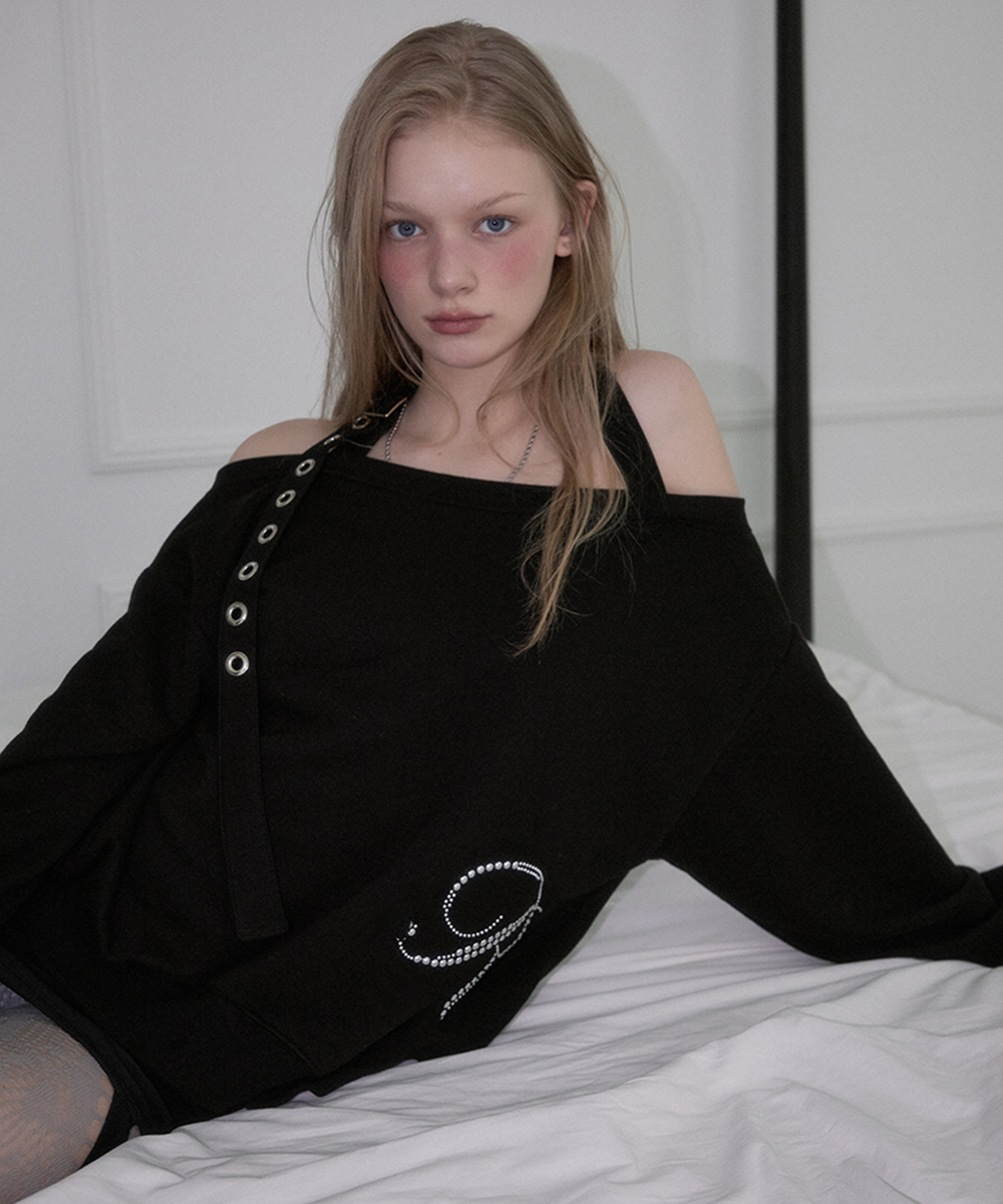 아일렛 스트랩 오픈 스웻셔츠 [4컬러]