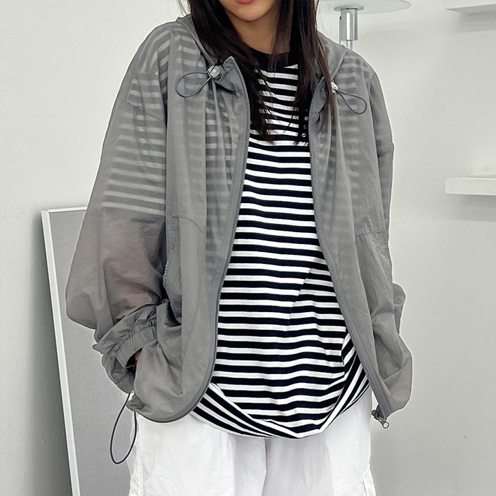 (모노레인) (빅사이즈) 후드 시스루 바람막이 점퍼 D 2210