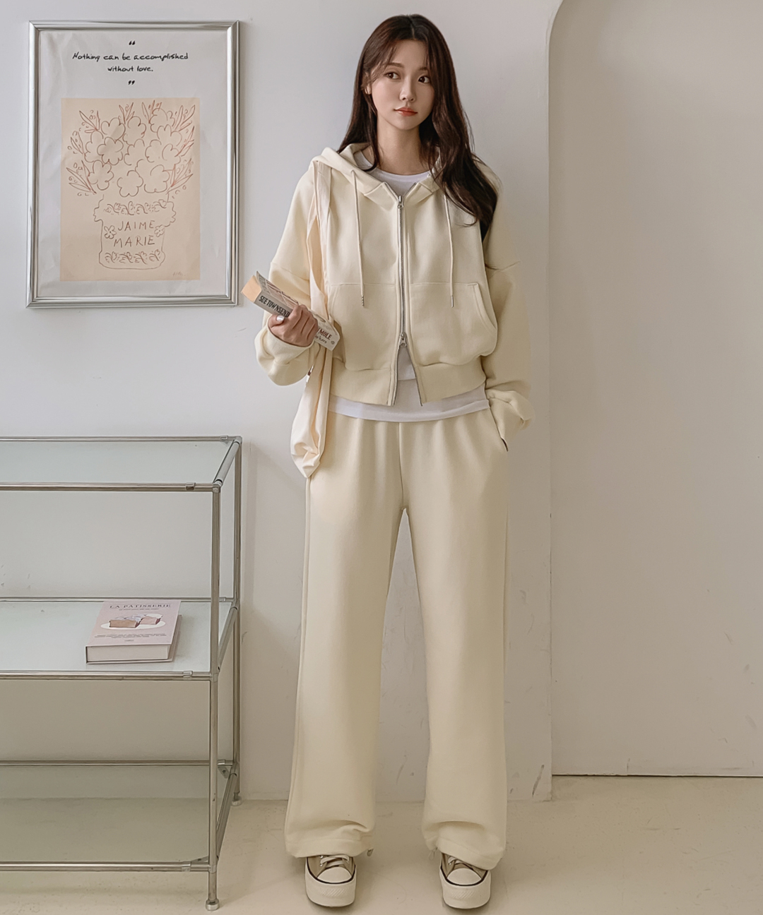 [MADE/set/단품구매가능] 세미크롭 투웨이 후드집업 와이드 조거 팬츠 트레이닝 세트 오버핏 가을 겨울 운동복 츄리닝 등원룩 셋업